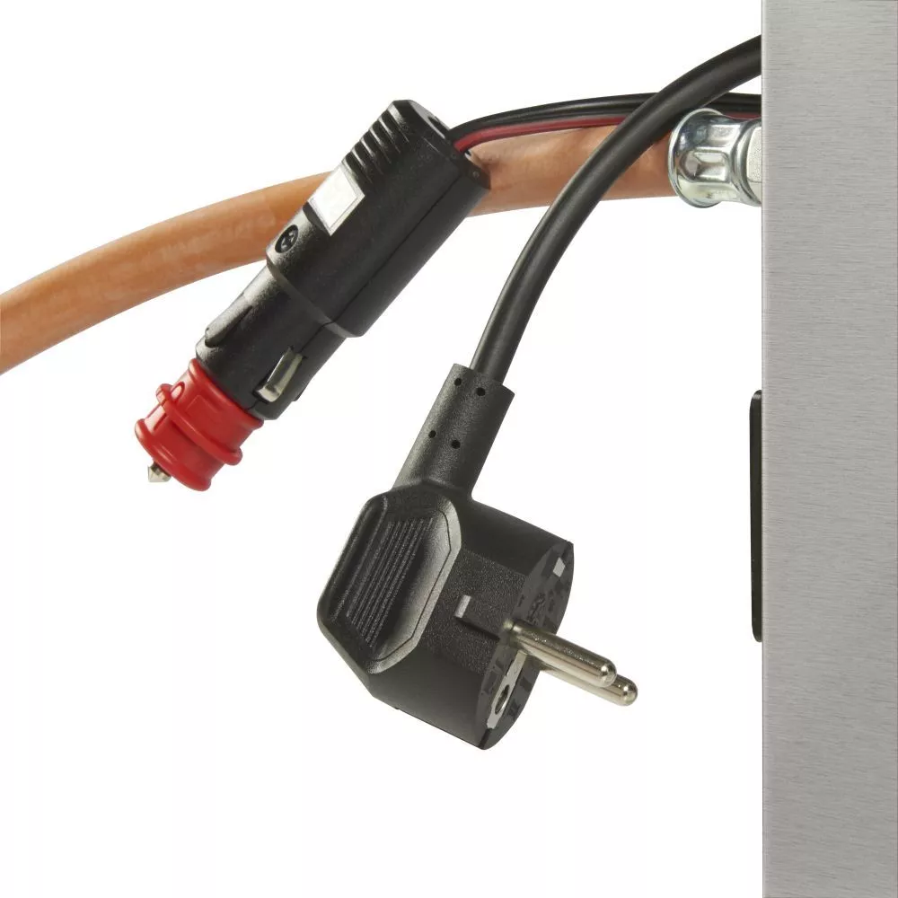 | Qualitätsmerkmale | Energieversorgung an jedem Einsatzort gesichert absolut leiser Betrieb im Verdampfer ist Platz für einen Eiswürfelbehälter dreistufige Regulierung der Flamme bei Gasbetrieb thermostatische Regelung bei 230-Volt-Betrieb attraktives Design und edles Gehäuse bietet Platz für 11x 1,5-Liter-Flaschen oder 67x 0,33 Liter-Dosen |