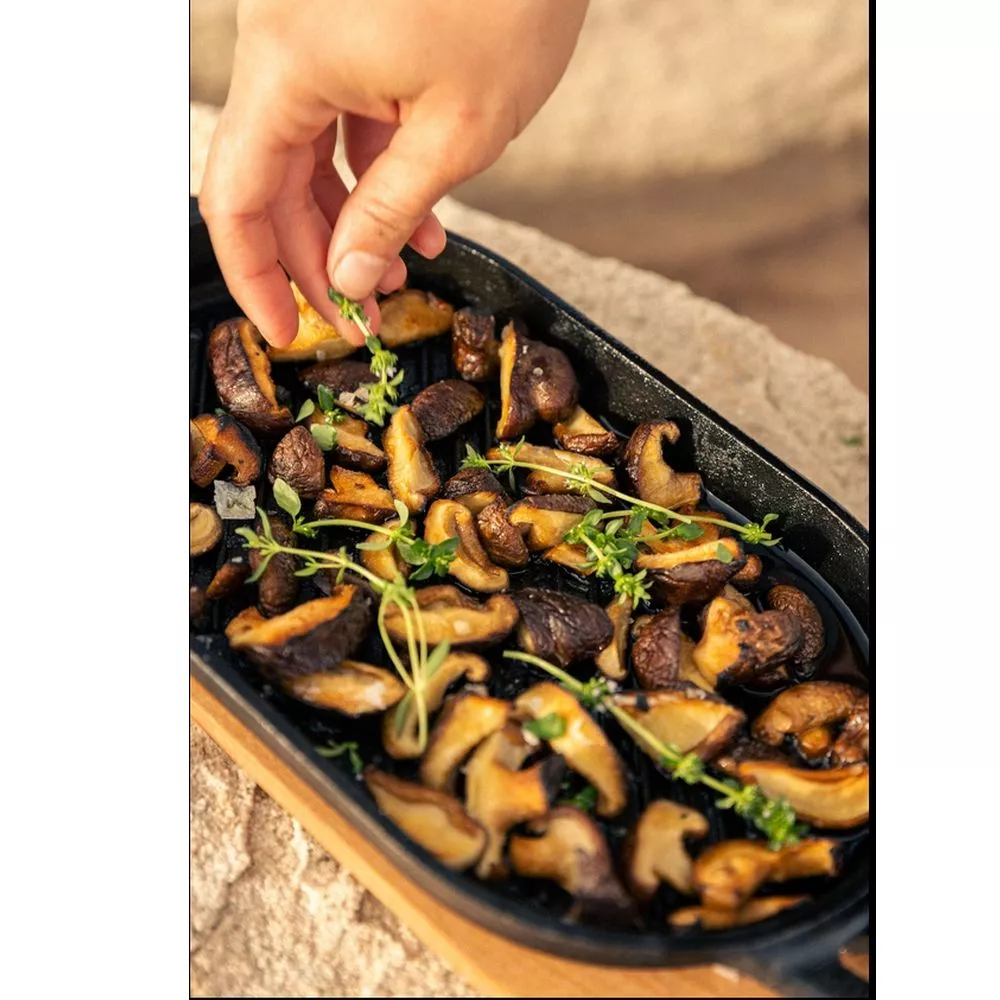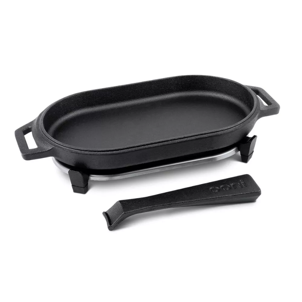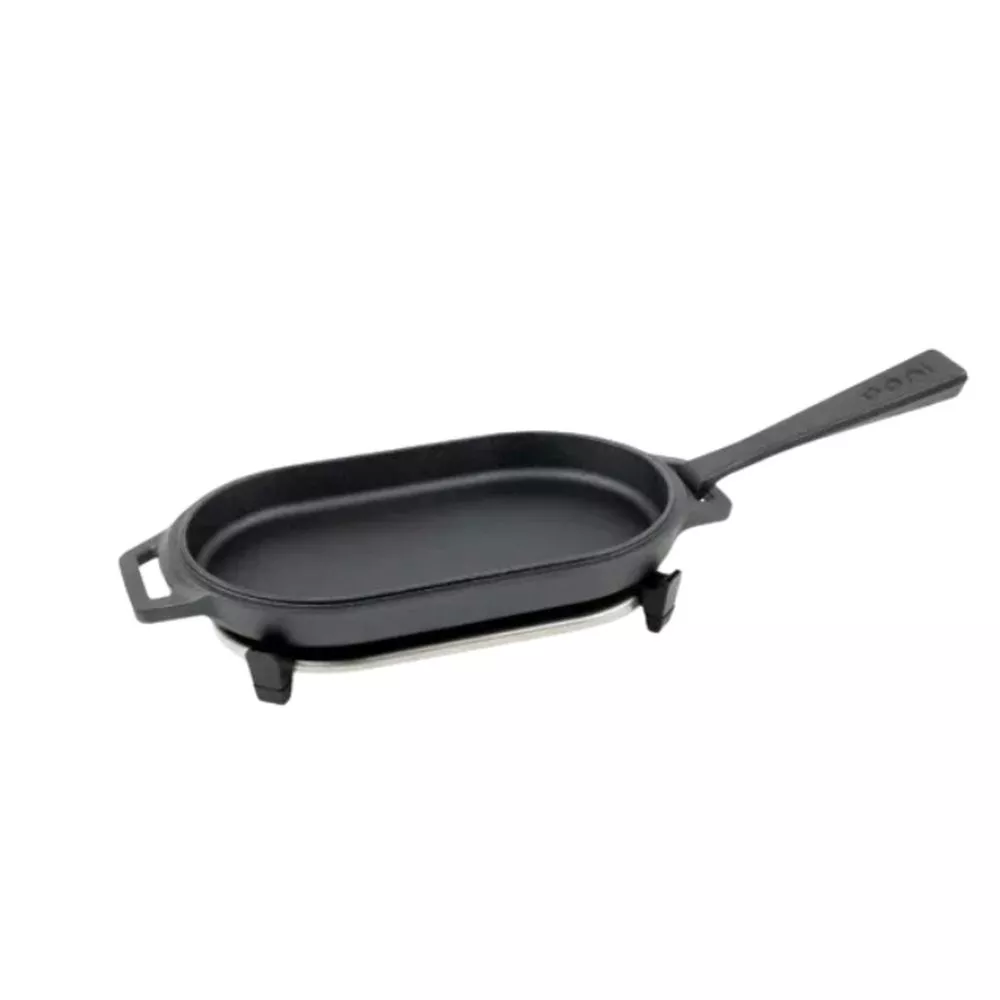 Die Ooni Servierpfanne ist perfekt zum Garen von Fleisch, Meeresfrüchten, Gemüse und vielem mehr in deinem Ooni Pizzaofen. Die Zutaten behalten ihren Saft und ihr Aroma, während sie in deinem Ooni Pizzaofen in Rekordzeit auf offener Flamme gegart werden. Der einzigartig gestaltete Griff ist abnehmbar und liegt gut in der Hand. Damit lassen sich mühelos brutzelnd heisse Gerichte direkt aus dem Ofen servieren. Diese Bratpfanne wird dir zusammen mit einem Untersetzer aus Stahl geliefert.