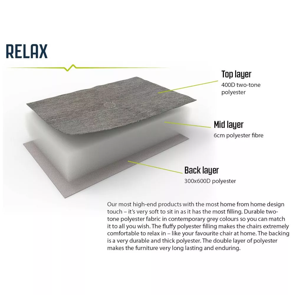 Rückseitige Schicht: 300 x 600D Polyester - Gestell: pulverbeschichteter Stahl