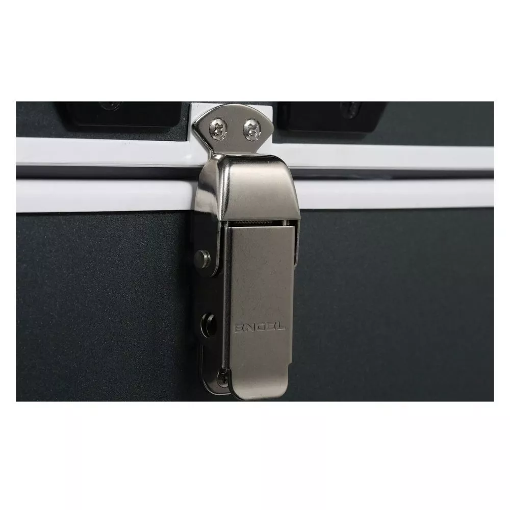 Die Kompressor-Kühlbox Engel MT-45F-V ist noch robuster und komfortabler als seine Vorgänger: die unteren Ecken wurden mit einem Schutz versehen, die Handgriffe wurden verstärkt, der Verschluss ist aus Edelstahl und abschliessbar. Es ist ein zuschaltbares LED-Licht für den Innenraum integriert. Was die Kühlleistung betrifft, ist diese jetzt dank Rundum-Verdampfer noch effizienter. Eine Vorrangschaltung sorgt dafür, dass automatisch von Batteriestrom auf Landstrom umgeschaltet wird, sobald dieser am Fahrzeug anliegt. Mit seinen 40 Litern Volumen bietet die Kühlbox Platz für bis zu 12 stehende 1,5-Liter-Flaschen.