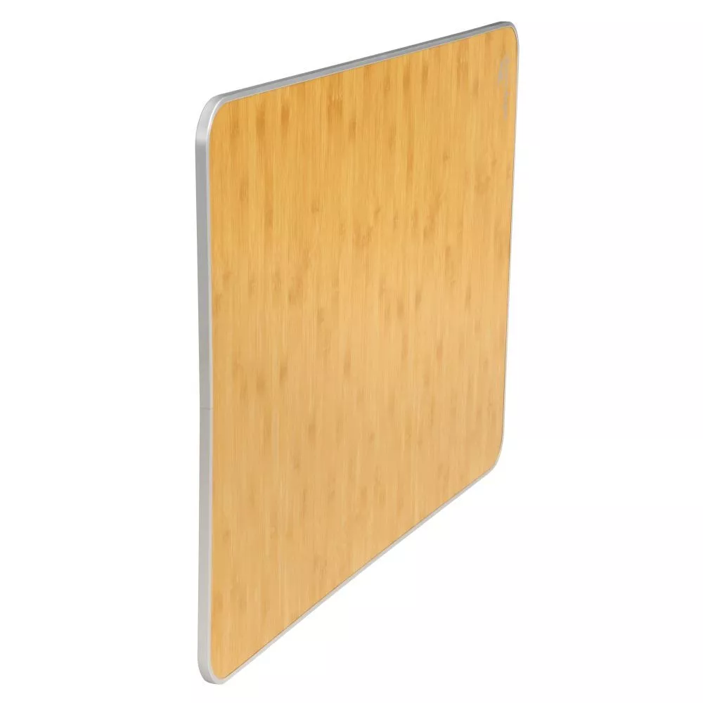 Die elegante, bambusbeschichtete MDF-Platte ist spritzwassergeschützt und leicht zu reinigen.