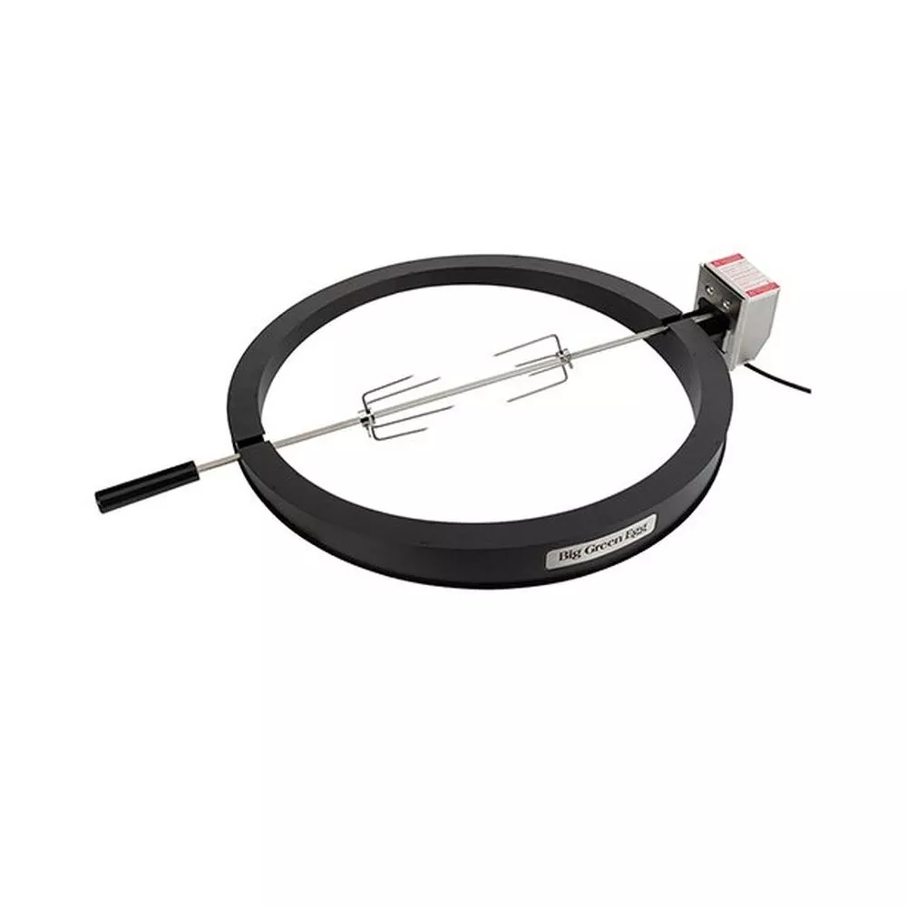 Leg den Spiessring einfach auf die Keramik-Basis und setz den Spiess in den Ring ein. Dann schliesst du den Deckel des EGGs, sodass du die Temperatur des EGGs wie immer perfekt überwachen kannst. Das ermöglicht es dir, den Drehspiess mit den Vorteilen des EGGs zu verbinden. Dank der Luftzirkulation im EGG, der Wärmereflexion der Keramik und der Drehung des Spiesses wird deine Zutat punktgenau durchgegart. Der Spiessring wird aus beschichtetem Stahl hergestellt, während der Drehspiess und die dazugehörigen Gabeln aus Edelstahl bestehen. Der Spiess wird von einem geräuschlosen, aber leistungsstarken Motor mit 220–240 Volt gedreht, wodurch eine gleichmässige Rotation gewährleistet ist.