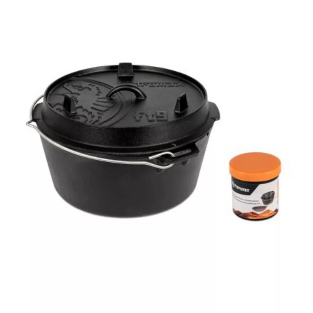 - Set bestehend aus Petromax Feuertopf ft9 mit planer Boden und Pflegepaste