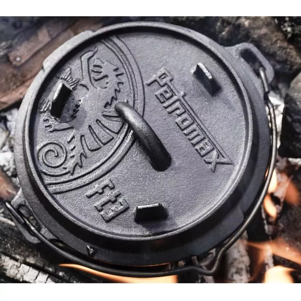 Die Petromax Feuertöpfe mit planem Boden sind ideale Begleiter für die outdoor-Küche, wie Reisen, Camping, etc. Mit ihnen garen Speisen, wie z. B. Fleisch und Gemüse, sehr schonend im eigenen Saft über offenem Feuer, im heimischen Backofen sowie auf allen Herdarten. Die Deckel der Feuertöpfe können zudem auf Wunsch als Servierplatte oder Pfanne genutzt werden. Dank der vorbehandelten Oberfläche (seasoned finished) ist der robuste Petromax Dutch Oven aus Gusseisen sofort verwendbar. Mit den Petromax Gusseisentöpfen kann man leckeres und gesundes Essen für Familie und Freunde zubereiten.