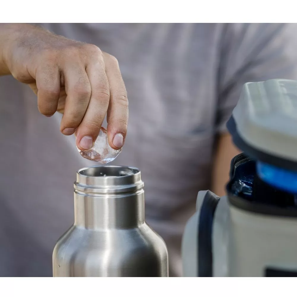 Die weite Öffnung der Isolierflasche hat einen Mehrfachnutzen: Zu einen sorgt sie dafür, dass sich die Flasche auch innen komfortabel reinigen lässt. Zum anderen können durch die grosse Öffnung Eiswürfel bis zu 3 cm Kantenlänge in die Flasche gegeben werden.