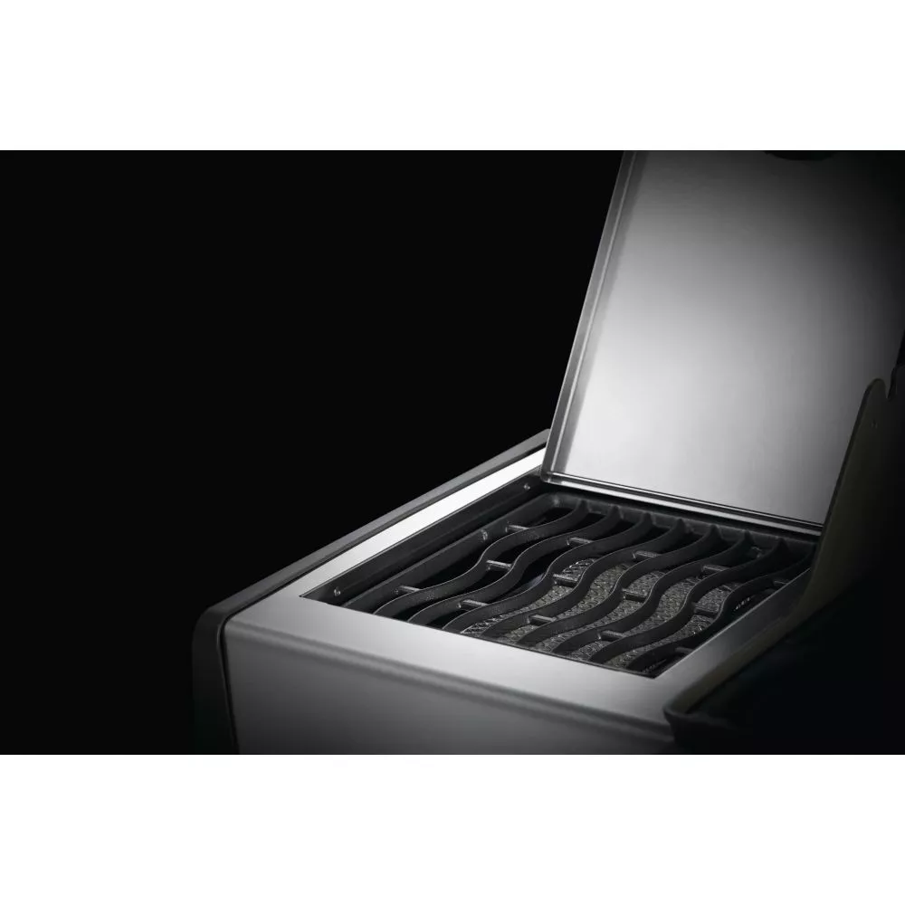 Hierbei wird jeder einzelne Brenner durch einen starken Feuerausstoss eines separaten Gasventils gezündet. Auf diese Weise werden die Brenner auch bei extremen Wetterbedingungen sicher entfacht. Das „verzweifelte“ Klicken einer erfolglosen Piezo-Zündung gehört der Vergangenheit an. - SIZZLE ZONE Infrarot-Seitenbrenner