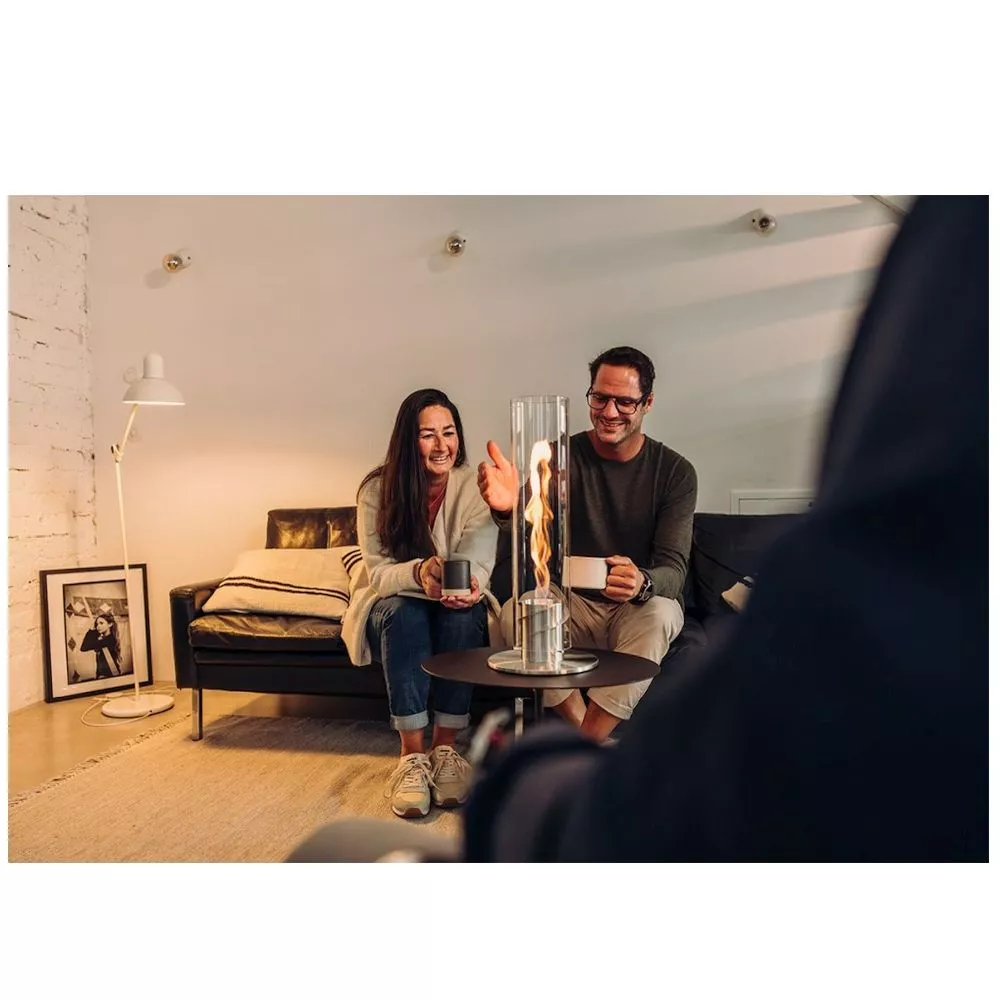 Das faszinierende Flammenspiel überzeugt durch erstklassige Ästhetik, durchdachte Funktionalität und kompromisslose Sicherheit. Basierend auf natürlichem höfats Bioethanol verwandelt sich die schlicht anmutende SPIN mit dem Aufsetzen des Glaszylinders aus hitzebeständigem Borosilikatglas sogleich in einen spektakulären Flammenwirbel. Der technologisch hochentwickelte Bio-Burner schliesst das flüssige Bioethanol sicher in seinem Inneren ein und lässt die markante Flamme wie eine Skulptur emporsteigen. Standfest, geruchlos und rauchfrei lässt sich die Wärme des Feuerspektakels geniessen. Dabei hast du alles unter Kontrolle, denn mit dem Eco-Ring kannst du die Brenndauer verdoppeln und sollte der Abend vor dem Erlöschen der Flamme zu Ende gehen, kann das Feuer mit dem beigelegten Löschdeckel vollständig und bedenkenlos erstickt werden.