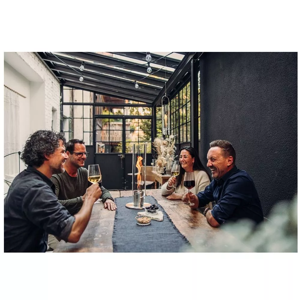 Mit dem höfats SPIN Tischfeuer 1200 erlebst du eine wohlige Wärme und ein geselliges Beisammensein mit der unverwechselbaren Eigenschaften des Feuers. SPIN fängt genau diese einzigartige Lagerfeueratmosphäre auf spektakuläre Art und Weise in einem Glaszylinder ein und lässt deinen Balkon, deine Terrasse, dein Wohnzimmer oder deinen Esstisch im sanften Licht der Flammen erstrahlen.