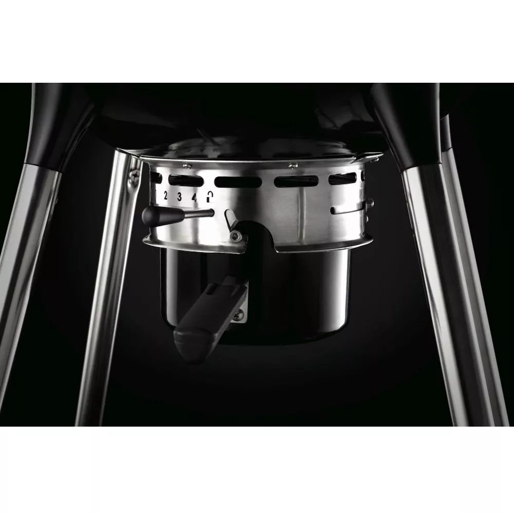Beim Grillen mit Holzkohle ist es wichtig, die Wärme über den Luftstrom zu kontrollieren. Das ist mit den steuerbaren Lüftungsschlitzen an der Ober- und Unterseite des Grills ganz einfach. Zudem ist die obere Entlüftungsöffnung vor den Elementen geschützt.