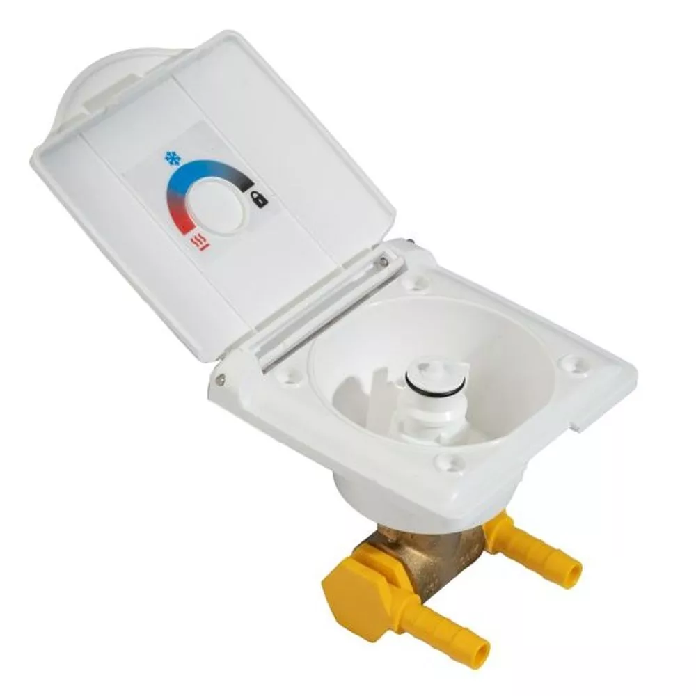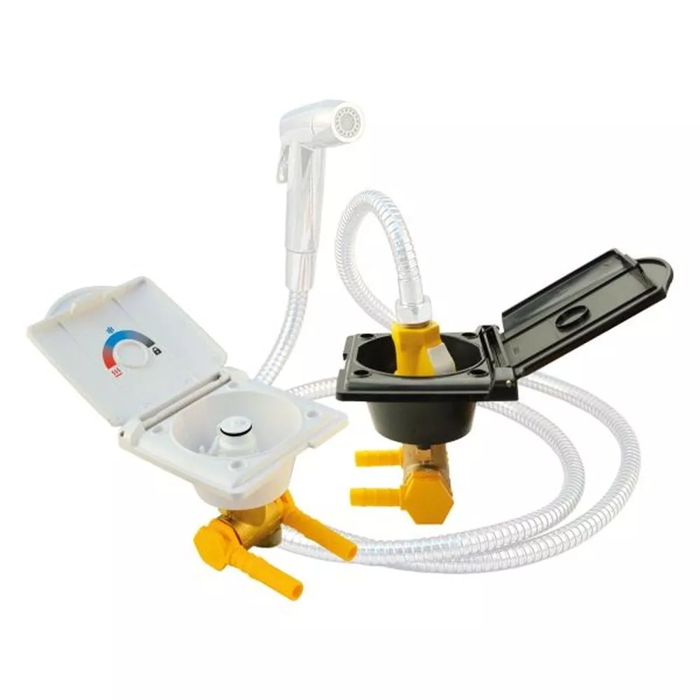 Der Lilie Duschanschluss ist ein hochwertiger Aussenduschanschluss für Warm- und Kaltwasser. Mit einem einfachen Dreh am Anschlussstück kannst du die Wassertemperatur mühelos regulieren. Der Anschluss zeichnet sich durch eine praktische Abdeckung aus, die sowohl in offener als auch in geschlossener Position einrastet. Zudem profitierst du von den vormontierten Anschlusstüllen, die eine schnelle und einfache Installation ermöglichen. Der robuste und langlebige Duschanschluss ist die ideale Lösung für Camper und Outdoor-Begeisterte..