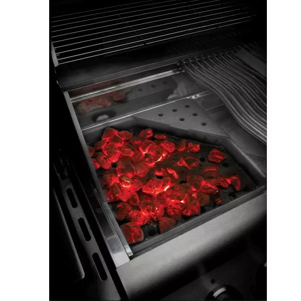 Verwandeln Sie Ihren Gasgrill in einen Holzkohlegrill. Einfach die Flammenschutzeinsätze rausnehmen, den Napoleon Holzkohleeinsatz auf den Brennern platzieren, Kohlen einlegen und mit dem Gasbrenner entzünden. Wenn die Kohlen „durchgeglüht“ sind, den Brenner abstellen, Roste einlegen und über den Kohlen grillen. Inklusive Räucherkammer für mehr Aroma!
