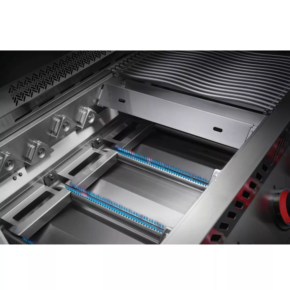 Die Infrarotwärme des Drehspiess-Brenners ist bestens für das Garen bei hoher Hitze und lansames Braten mit dem Drehspiess - WAVE-Stabgrillroste aus Edelstahl (9,5 mm)