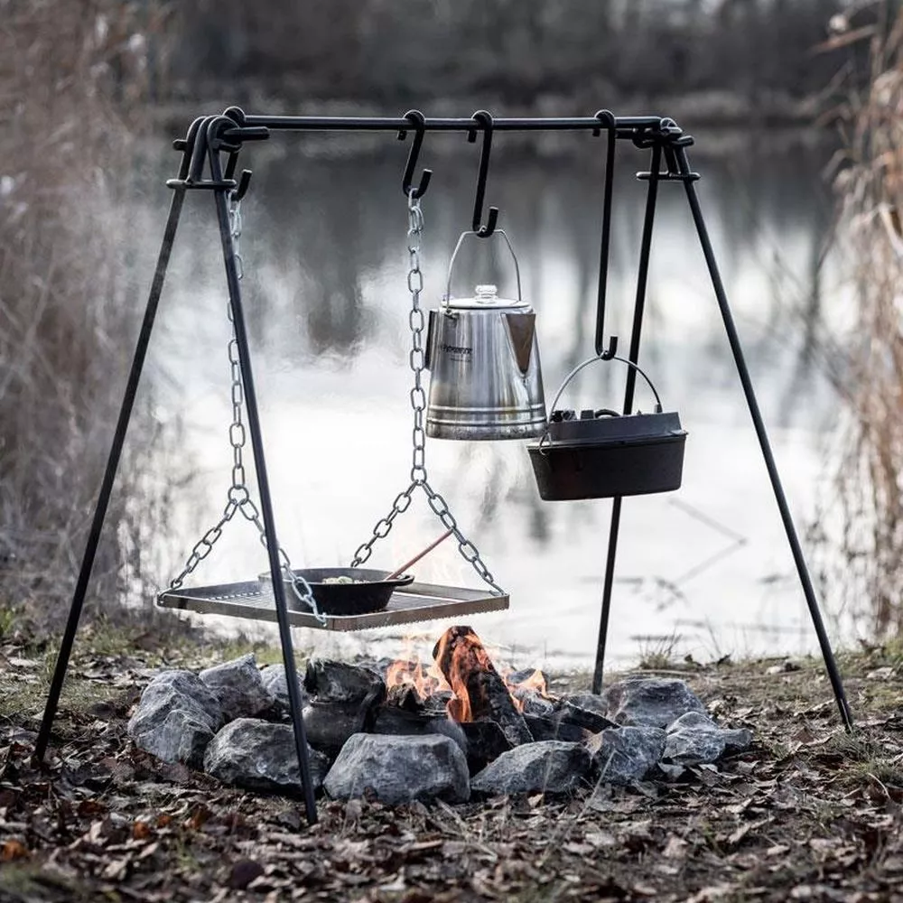 - inklusive 3 Haken mit unterschiedlichen Längen zum sicheren Aufhängen von Dutch Oven, Töpfen etc.