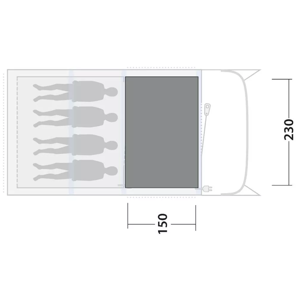 Dieser Zeltteppich ist passgenau auf den Wohnbereich vom Campingzelt Outwell Monterey 4 Air zugeschnitten. Er beschert sofortige Wärme und warme Füsse, garantiert Wohnkomfort und mehr Behaglichkeit bei Tag und Nacht. Zieh die Schuhe aus, spiel mit den Kindern auf dem Boden und steige an kalten Morgen unbekümmert aus dem Bett auf einen angenehm warmen Boden.