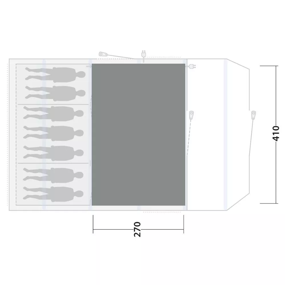 Dieser Zeltteppich ist passgenau auf den Wohnbereich vom Campingzelt Outwell Tennessee 7 Air zugeschnitten. Er beschert sofortige Wärme und warme Füsse, garantiert Wohnkomfort und mehr Behaglichkeit bei Tag und Nacht. Zieh die Schuhe aus, spiel mit den Kindern auf dem Boden und steige an kalten Morgen unbekümmert aus dem Bett auf einen angenehm warmen Boden.