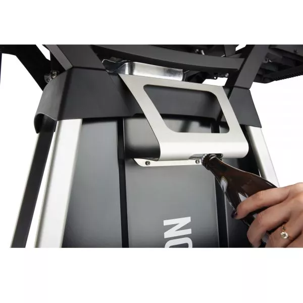 Der gesamte Wagen ist für den schnellen und einfachen Einsatz konstruiert. Ist wenig Platz vorhanden, werden die Seitenablagen einfach ausgehängt. Der Wagen selbst bietet viel Stauraum: integrierte Handtuchhalter, Besteckhaken und Halterungen für die Grillroste. Das Edelstahl-Gewürzregal besitzt zusätzlich einen integrierten, komfortablen Flaschenöffner.