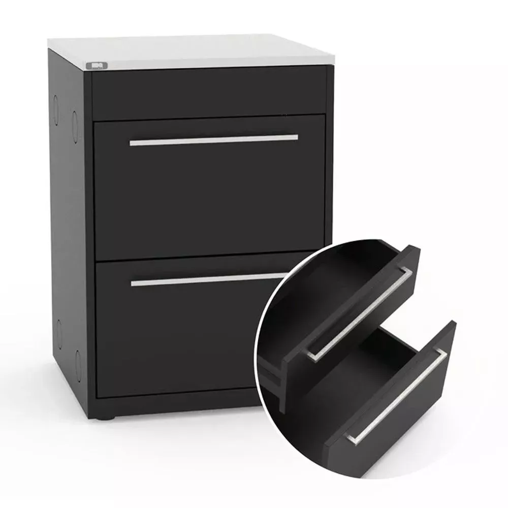 Das 3-Module-Set besteht aus einem 2fach-Ladenmodul, Seitenkocher-Türmodul und einem Türmodul. Das 2-fach Ladenmodul bietet mit einer Maximalkraft von 65 kg pro Laden die optimale Möglichkeit, schweres Grillzubehör aus Gusseisen und andere Grillaccessoires ordentlich und jederzeit griffbereit zu verstauen. Auch kleinere Hilfsmittel zum Grillen oder Kochen finden so ihren Platz in der BBQ Outdoorküche.