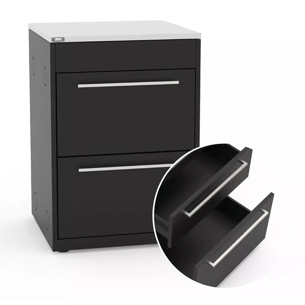 Das 2-Fach Ladenmodul bietet mit einer Maximalkraft von 65 kg pro Laden die optimale Möglichkeit, schweres Grillzubehör aus Gusseisen und andere Grillaccessoires ordentlich und jederzeit griffbereit zu verstauen. Auch kleinere Hilfsmittel zum Grillen oder Kochen finden so ihren Platz in der BBQ Outdoorküche.